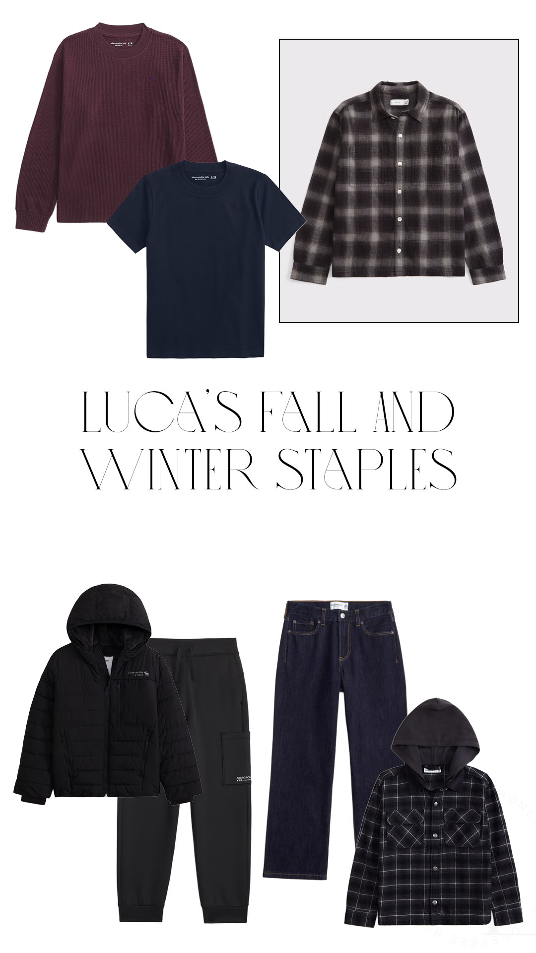 The Black Friday sales are in full swing and I have have a MAJOR post going up tomorrow. In the meantime, I always get asked about clothes for the kids and one of our go to’s is having a HUGE sale right now so figured I would do a quick round up of the Fall & Winter staples I swear buy for the kids from Abercrombie.
